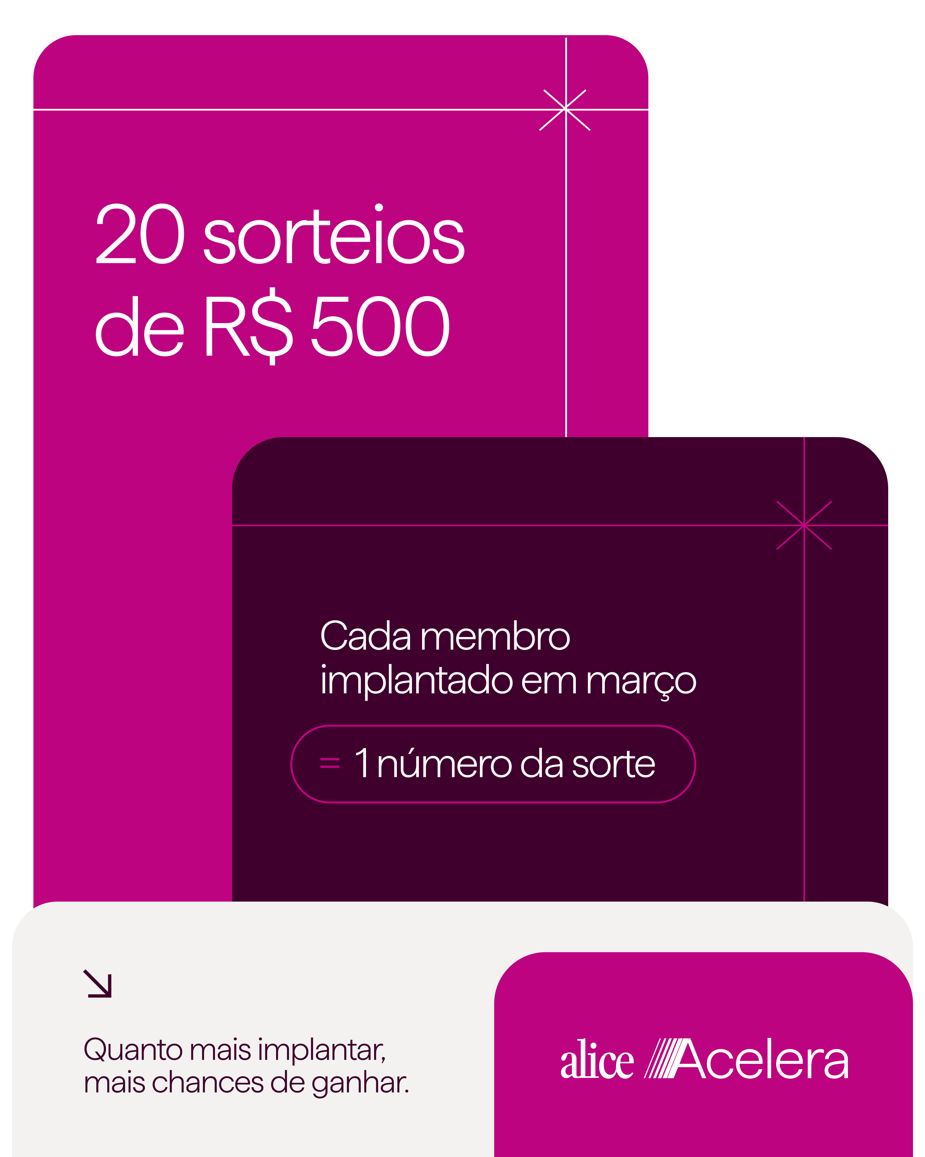 20 sorteios de R$ 500. Um número da sorte por vida implantada